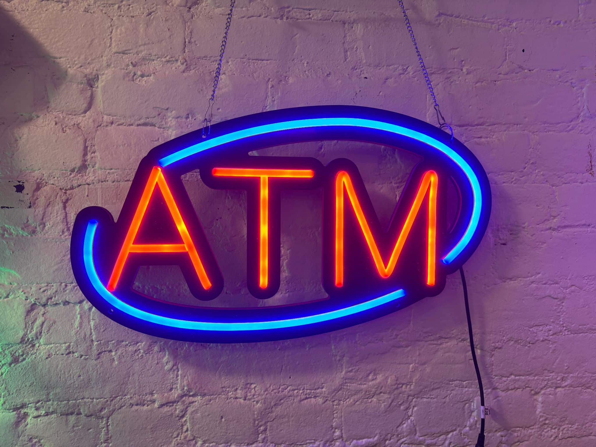 Elevate your business’s visibility with our Neon ATM Sign, expertly crafted to blend modern aesthetics with functional design. This distinctive sign combines the allure of neon lighting with the structure of a sleek black metal grid, making it a perfect addition to your establishment’s exterior or interior. With its dynamic appearance, this sign promises to catch the eye, draw attention, and guide customers seamlessly to your ATM.