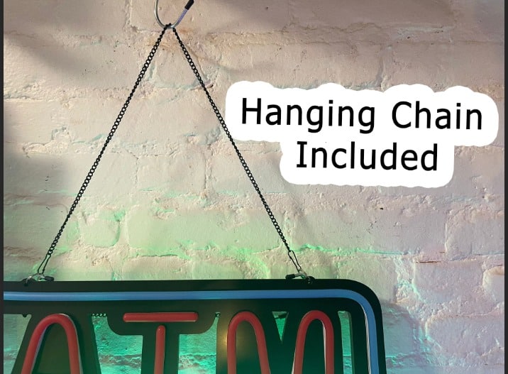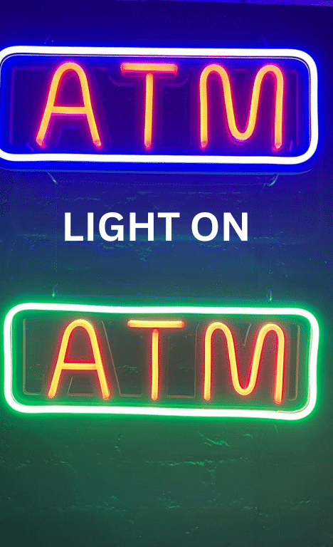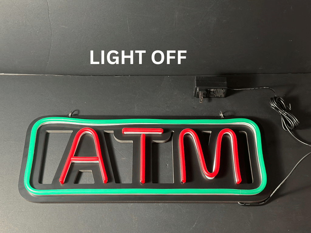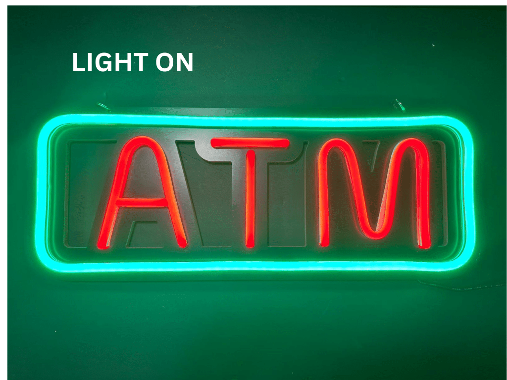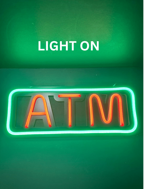 Elevate your business’s visibility with our Neon ATM Sign, expertly crafted to blend modern aesthetics with functional design. This distinctive sign combines the allure of neon lighting with the structure of a sleek black metal grid, making it a perfect addition to your establishment’s exterior or interior. With its dynamic appearance, this sign promises to catch the eye, draw attention, and guide customers seamlessly to your ATM.
